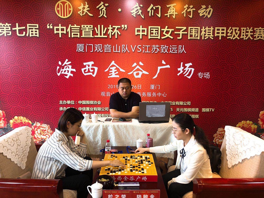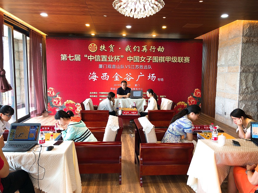 都說魚離不開水,魚兒上了陸,結(jié)果一望便知。這不,上周末,美麗鷺島就又上演了一場魚兒登陸的好戲。5月26日,第7屆中信置業(yè)杯中國女子圍棋甲級(jí)聯(lián)賽第3輪(廈門觀音山隊(duì)主場 VS 江蘇致遠(yuǎn)隊(duì))“海西金谷廣場”專場在位于廈門觀音山海岸的觀音山總部企業(yè)商務(wù)服務(wù)中心戰(zhàn)罷。廈門觀音山隊(duì)家門口以2-1鎖定勝局,成功挑落女子圍甲六冠王——衛(wèi)冕冠軍江蘇隊(duì)。