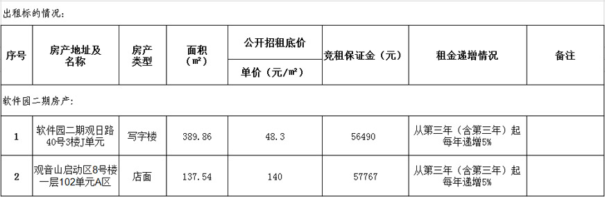 備注:意向承租人對(duì)上述情況應(yīng)有充分了解。詳細(xì)招租規(guī)則、房屋租賃合同樣本、承諾函、報(bào)價(jià)單等招租文件于報(bào)名參加時(shí)領(lǐng)取。