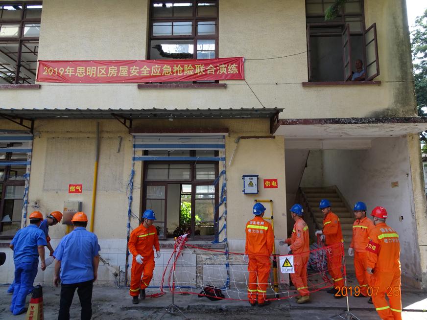 7月25日思明區(qū)建設(shè)管理局開展2019年思明區(qū)房屋安全應(yīng)急搶險(xiǎn)聯(lián)合演練,模擬危舊房由于年久失修,造成鋼筋混凝土樓板及陽臺(tái)板的險(xiǎn)情,危及房屋內(nèi)人員和公共安全。演練通過開展人員疏散與轉(zhuǎn)移,停水、停電與停氣,鋼筋混凝土樓板臨時(shí)加固和頂撐支護(hù),鋼筋混凝土陽臺(tái)板頂撐支護(hù)等應(yīng)急搶險(xiǎn)內(nèi)容,旨在提高應(yīng)對房屋安全突發(fā)性事件的應(yīng)急處置能力,加強(qiáng)思明區(qū)房屋應(yīng)急工作相關(guān)部門、隊(duì)伍人員之間的應(yīng)急響應(yīng)和協(xié)同能力,保證房屋安全應(yīng)急搶險(xiǎn)工作高效有序進(jìn)行。