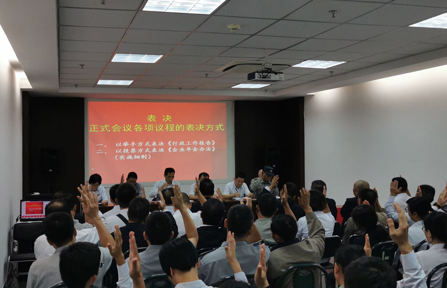 行政部負責人向大會作了《企業(yè)年金方案》的講解和說明,職工代表分組就《企業(yè)年金方案(實施細則)》進行討論,最后與會職工代表以無記名投票方式表決通過了《企業(yè)年金方案(實施細則)》。