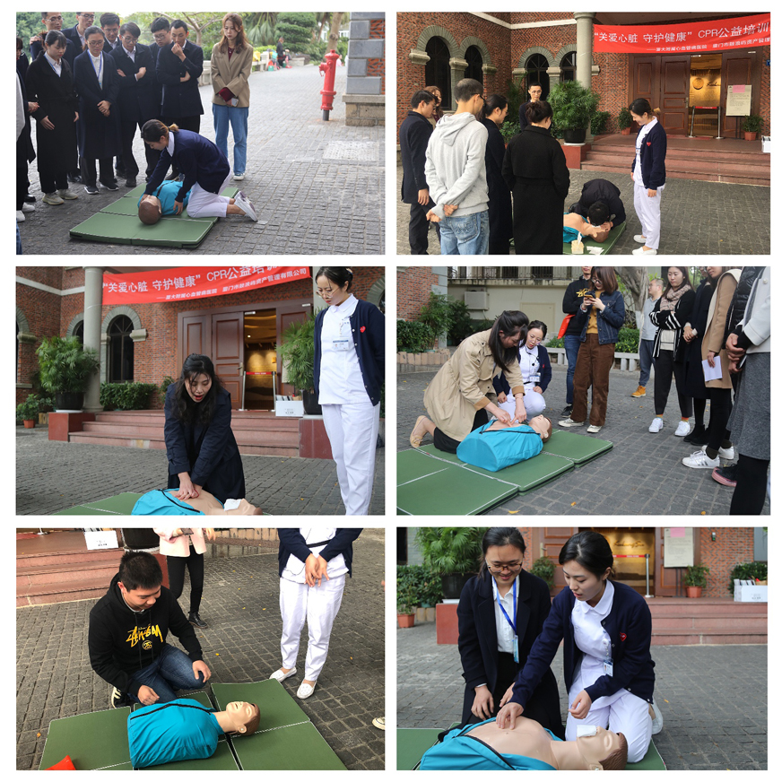 為增強公司員工的急救理念,樹立急救意識,提高急救技能,2019年12月23日下午,廈門市鼓浪嶼資產(chǎn)管理有限公司聯(lián)合廈門大學附屬心血管病醫(yī)院,在鼓浪嶼歷史文化陳列館前對全體員工開展心肺復蘇急救培訓活動。同時,公司黨支部與心血管病醫(yī)院志愿服務隊一起為在島居民及游客分發(fā)宣傳資料以及CRP公益培訓等志愿服務。