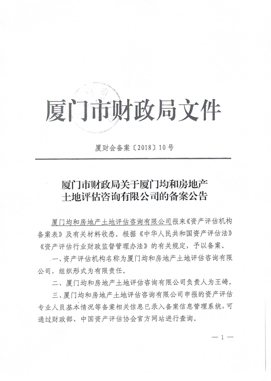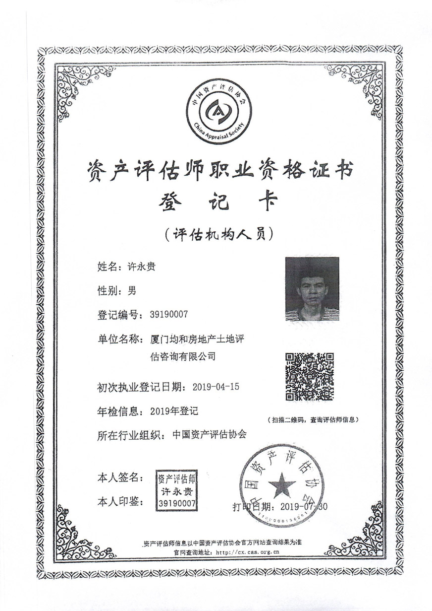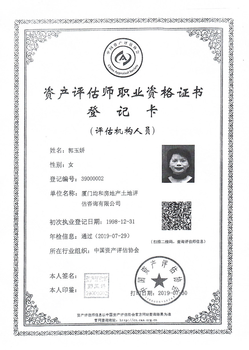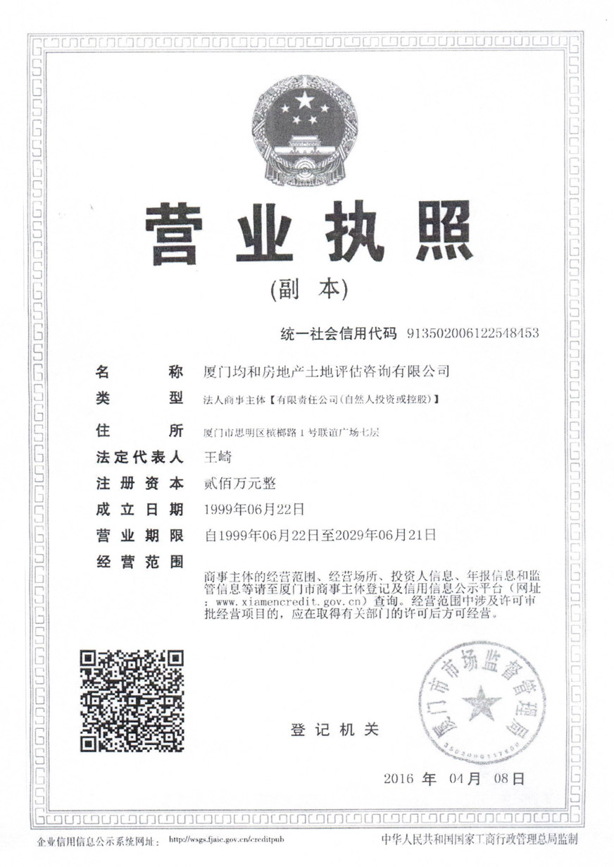 2.廈門均和房地產(chǎn)土地評估咨詢有限公司相關(guān)資質(zhì)證書