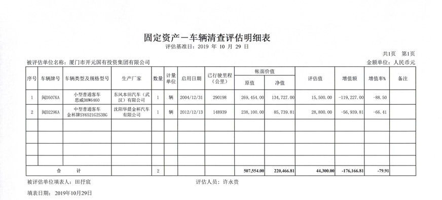 3.《思明控股車輛清查評估明細(xì)表》