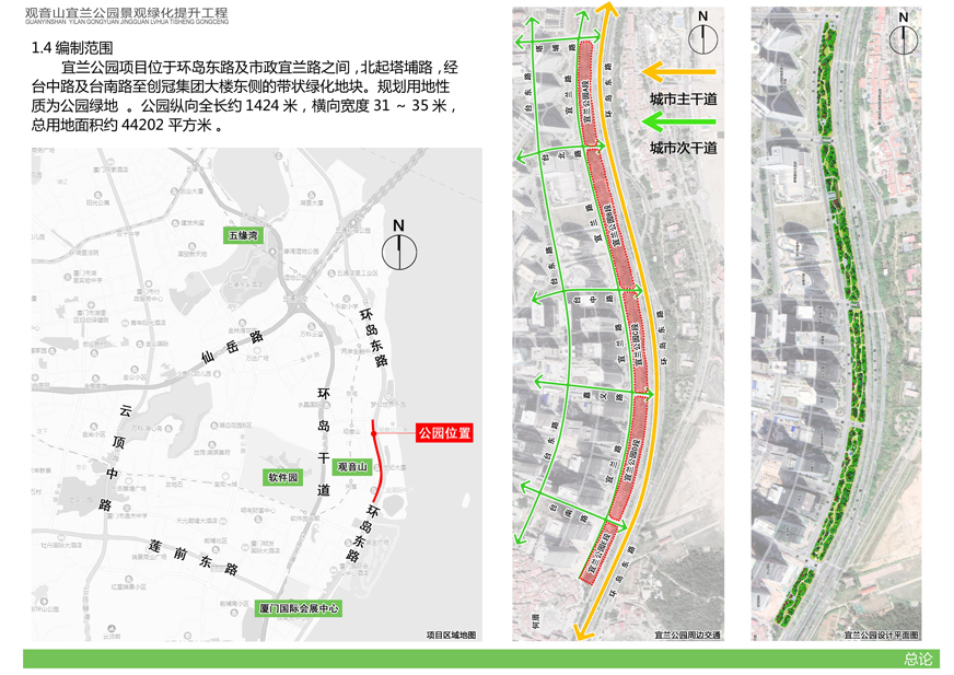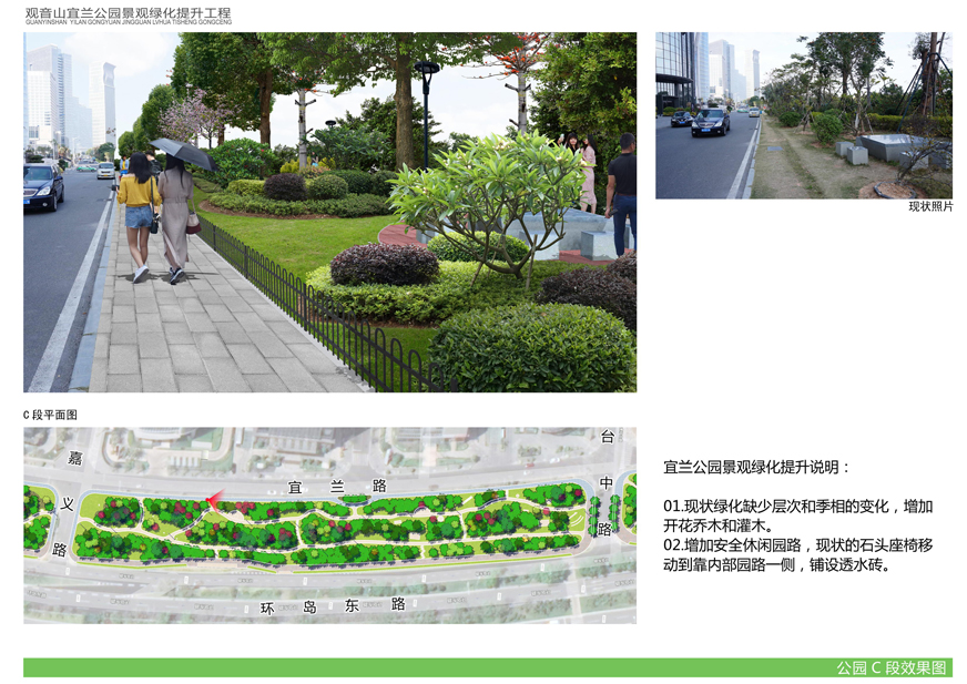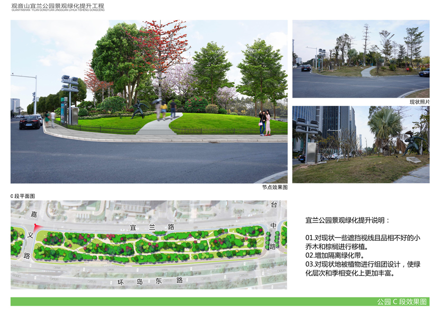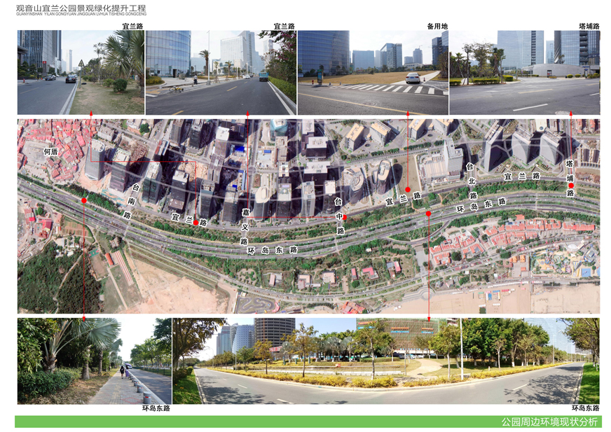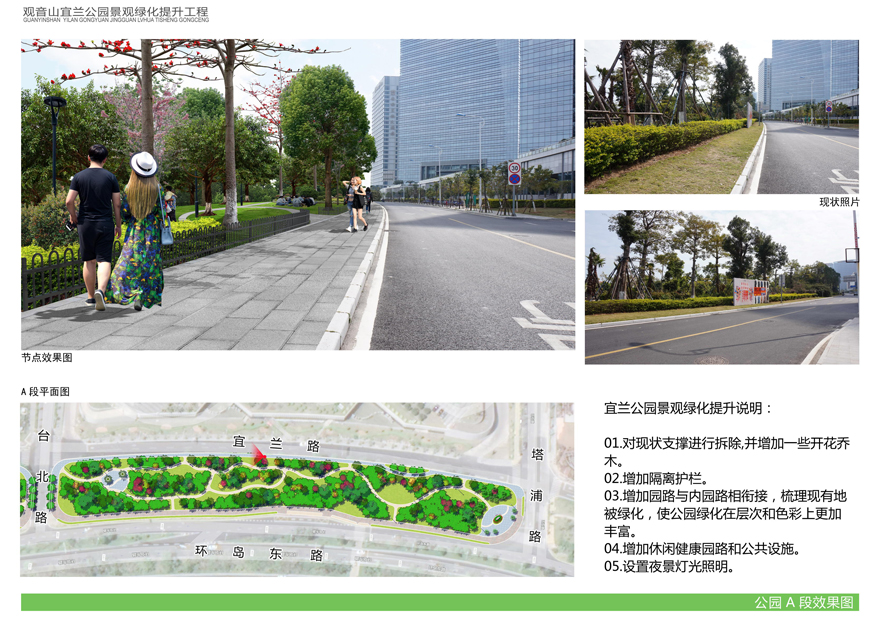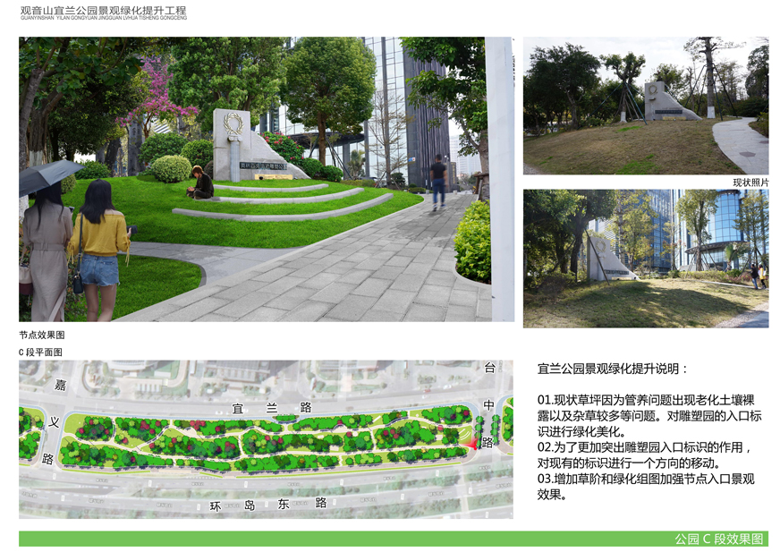 為切實改善上述問題,提升觀音山片區(qū)辦公環(huán)境檔次,廈門市開元國有投資集團(tuán)有限公司擬對觀音山宜蘭公園進(jìn)行綠化提升,并委托廈門市城邦園林規(guī)劃設(shè)計研究院有限公司進(jìn)行了方案設(shè)計。根據(jù)廈府辦[2019]115號文要求,現(xiàn)將設(shè)計方案予以公布并廣泛征求意見。