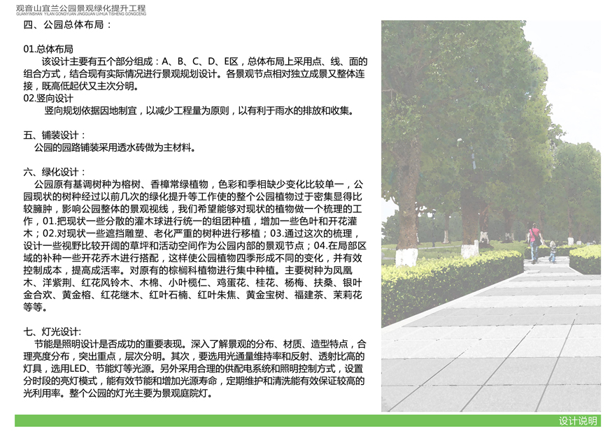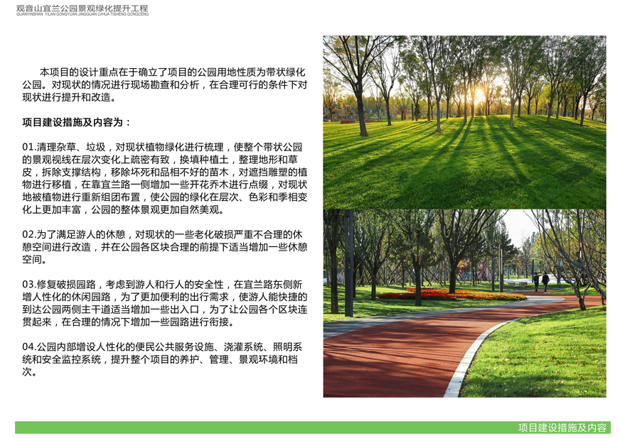 具體內(nèi)容詳見附件:《觀音山宜蘭公園景觀綠化提升工程設(shè)計方案》