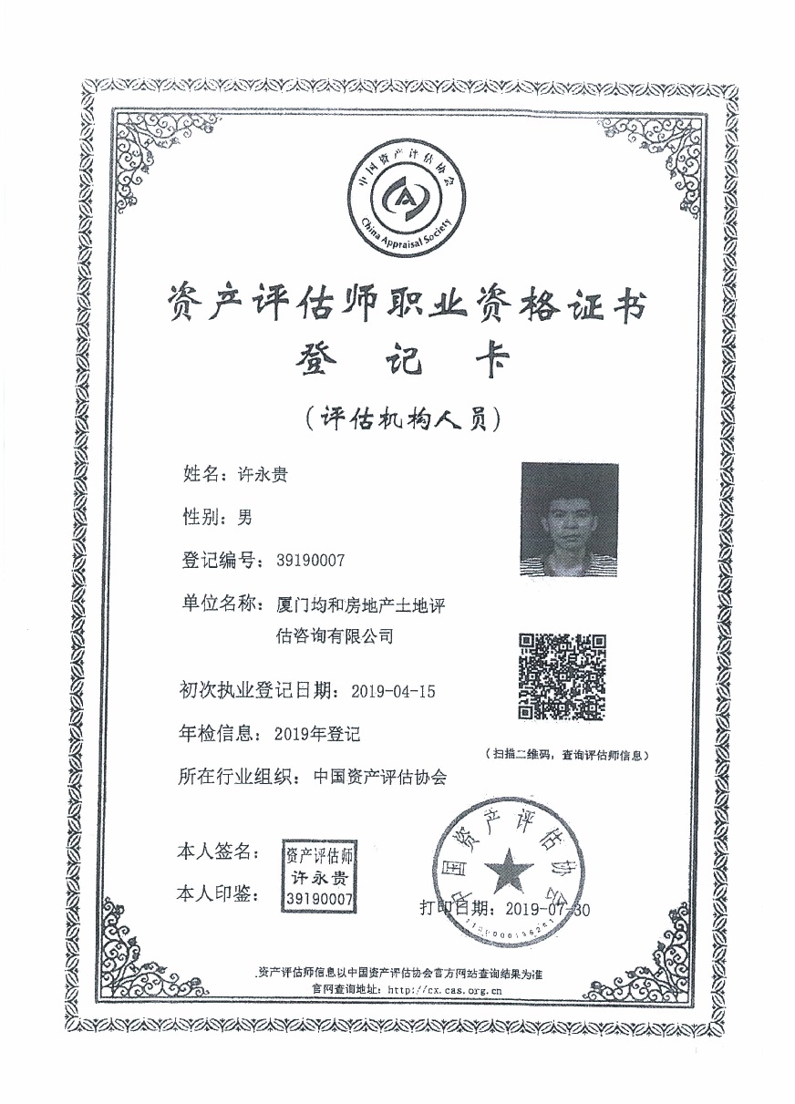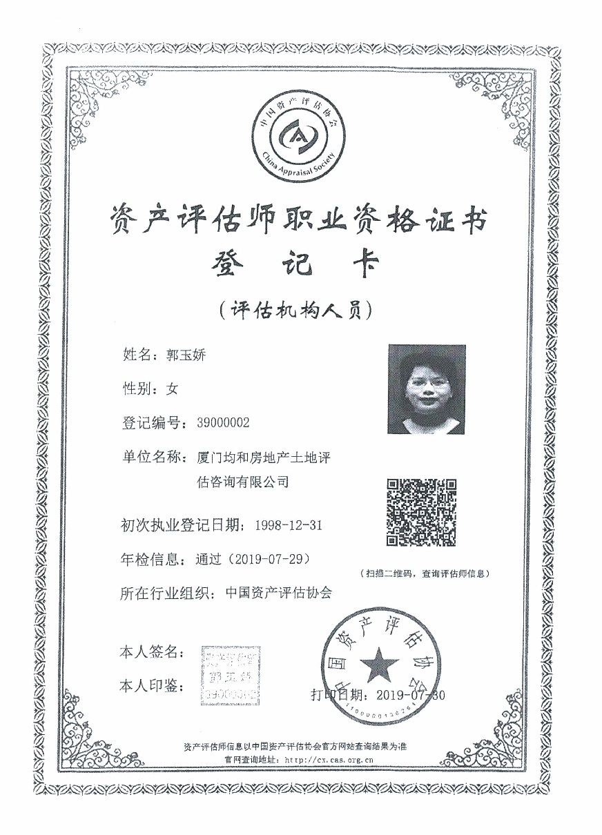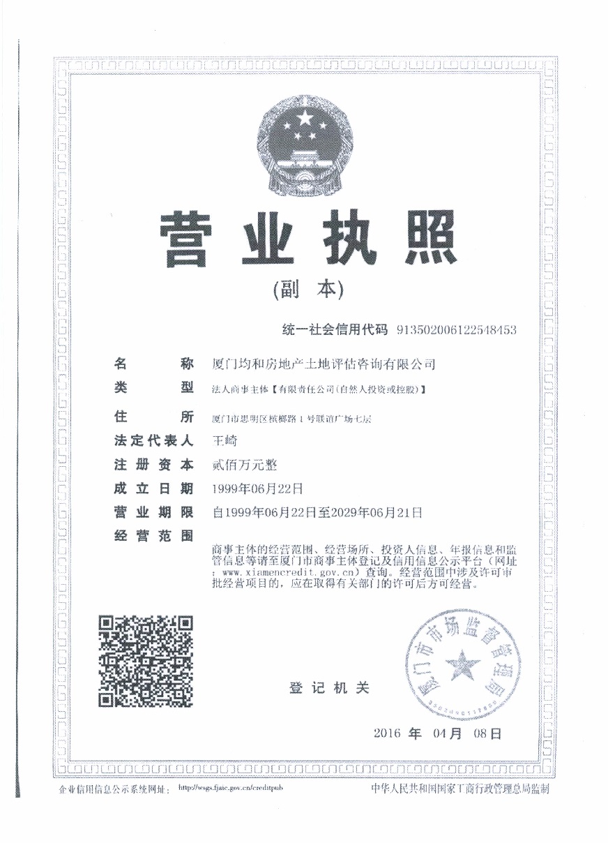 2.廈門(mén)均和房地產(chǎn)土地評(píng)估咨詢(xún)有限公司相關(guān)資質(zhì)證書(shū)