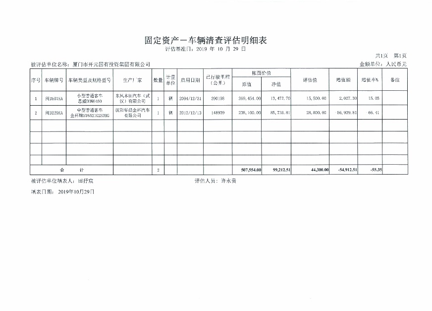 3.《思明控股車(chē)輛清查評(píng)估明細(xì)表》。