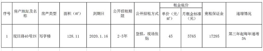 軟件園二期觀日路40號3N房產(chǎn)招租情況表