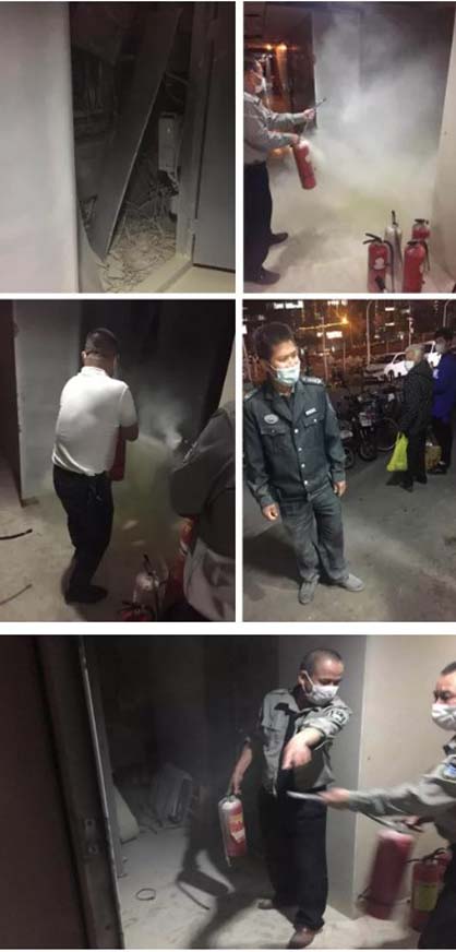 平常不忘消防應急演練,緊要關頭派上場。2020年4月17日18點45分觀音山公寓消防系統(tǒng)警報響起。監(jiān)控室值班員發(fā)現(xiàn)塔埔路100號19樓有濃煙,馬上通知當班維序員上樓查看,確認是18樓弱電井內起火。服務處即刻啟動消防應急預案,撥打119火災報警電話,向上級匯報情況?;鹎榫褪敲睿飿I(yè)維序員即刻集結到現(xiàn)場,首先切斷樓層電源,引導樓層居民疏散,現(xiàn)場在確認火勢不大的情況下,維序員運用日常消防演練的知識,采用干粉滅火器對著火點滅火;18:53分明火被撲滅。由于發(fā)現(xiàn)及時、撲救及時,著火范圍沒有擴散,沒有人員傷亡。