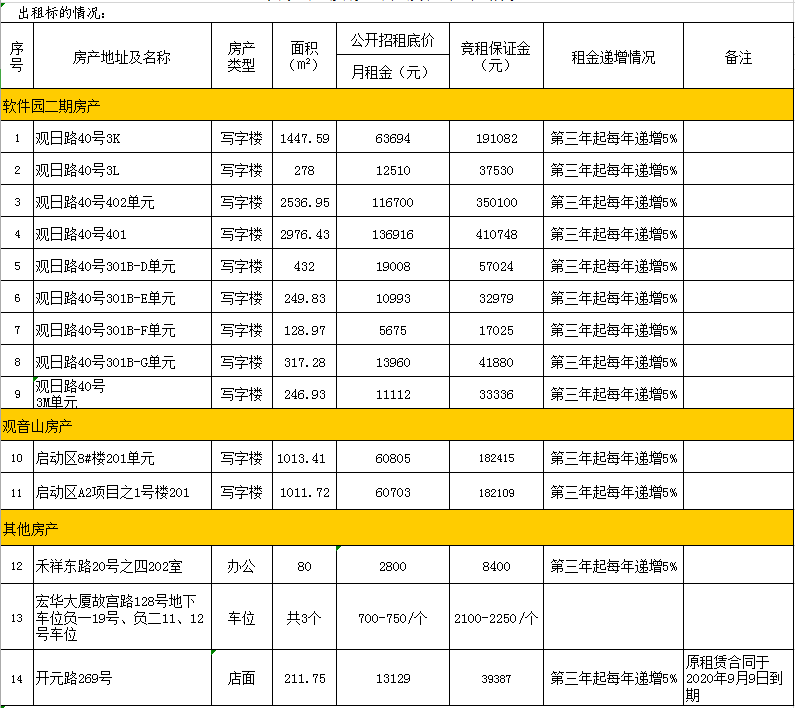 備注:意向承租人對上述情況應(yīng)有充分了解。詳細招租規(guī)則、房屋租賃合同樣本、承諾函、報價單等招租文件于報名參加時領(lǐng)取。