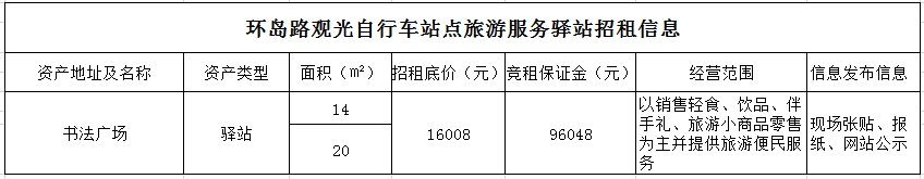 備注:意向承租人對上述情況應有充分了解。詳細招租規(guī)則、合同、承諾函、報價單等招租文件于報名參加時領取。