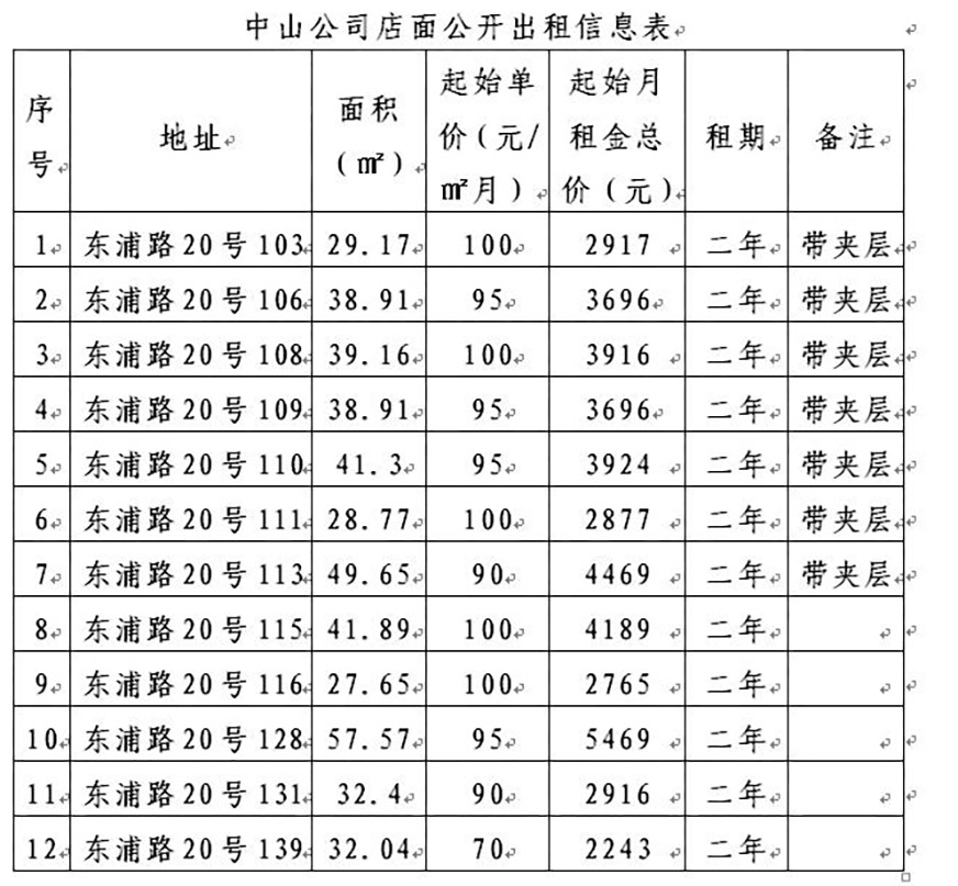 備注:意向承租人參加投標(biāo)前應(yīng)對(duì)以上店面招租情況有充分了解并可以實(shí)地踏勘。詳細(xì)招租規(guī)則、房屋租賃合同樣本、承諾函、報(bào)價(jià)單等招租文件可聯(lián)系招租人領(lǐng)取。