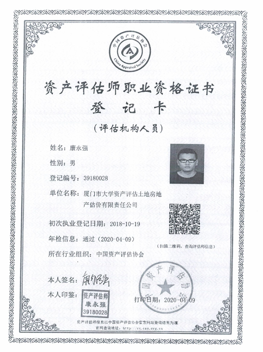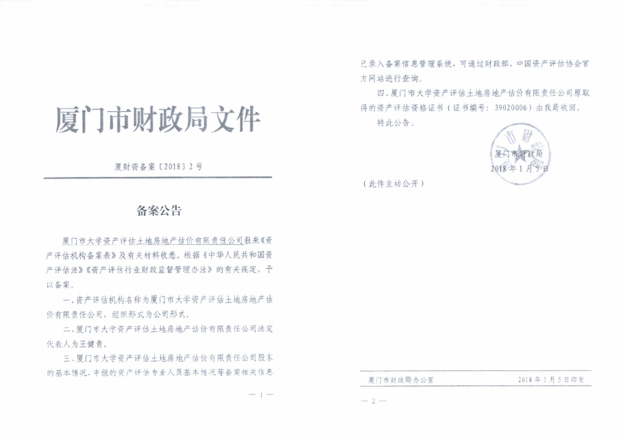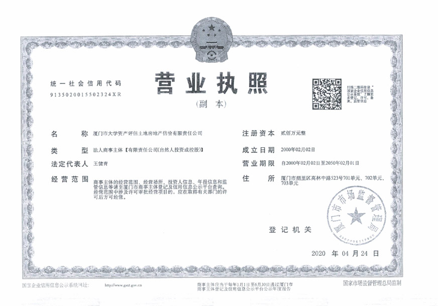 2. 廈門市大學(xué)資產(chǎn)評(píng)估土地房地產(chǎn)估價(jià)有限責(zé)任公司相關(guān)資質(zhì)證書