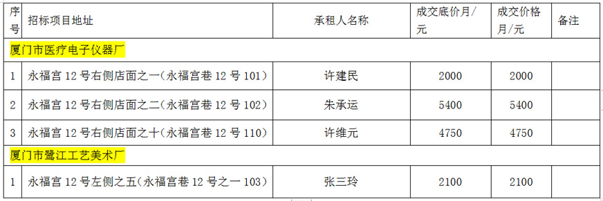 思明區(qū)區(qū)屬托管企業(yè)公開招租成交公告