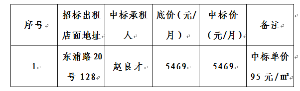 浦南安置小區(qū)東浦路20號103等12間店面公開招租結(jié)果公告