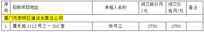 思明區(qū)區(qū)屬托管企業(yè)公開招租成交公告