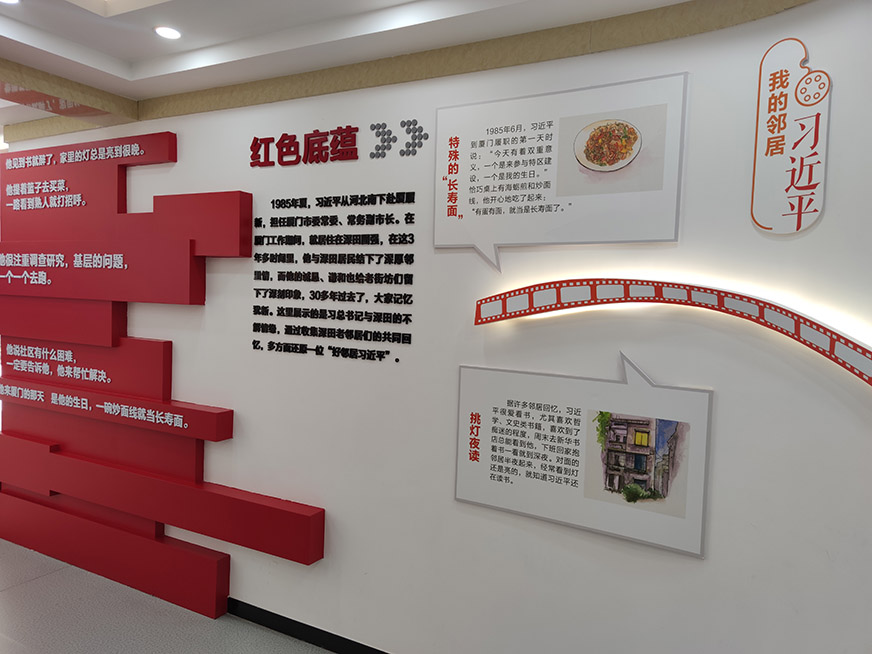 在政治生活館內,從特別的“長壽面”、簡樸的婚禮、一張手寫明信片等一件件溫馨事跡,從觀看《我的鄰居習近平》錄像片到聽小朋友生動講述習爺爺?shù)墓适?,?ldquo;我可以叫你小習嗎”“伊是阮的好厝邊”及“深田讀冊歌”等小片段中,讓我們仿佛看到了當年習近平總書記入鄉(xiāng)隨俗、與深田居民一起嘮嘮嗑、拉家常的生活場景,直觀感受了習近平總書記平易近人、誠懇謙和、勤奮好學的優(yōu)秀品格以及一心為民、清廉務實的工作作風。