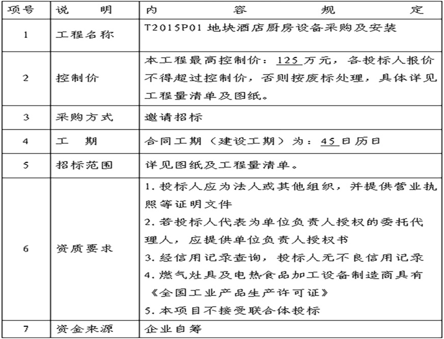 T2015P01地塊酒店廚房設(shè)備采購(gòu)及安裝