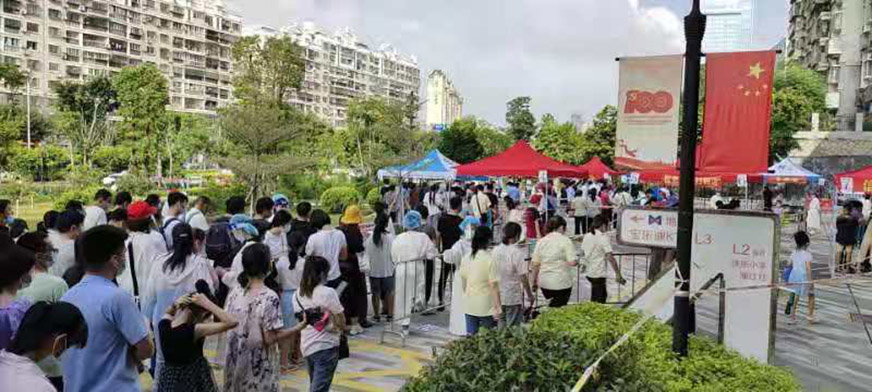 7月30號凌晨2點,隨著一通通支援核酸檢測點的電話響起,在睡夢中被催醒的同事們都堅定地回應:“我可以,幾點集合”,沒有猶豫“逆向而行”。他們穿上防護服,聽從崗位安排,快速熟諳檢測流程,熱情、耐心引導前來檢測的群眾做好排隊、掃碼、測體溫、登記信息等工作。他們頂著烈日高溫,穿著防護服密不透風,一天連續(xù)奮斗十多個小時,里面的衣衫早已被汗水浸透,卻絲毫沒有任何怨言和退縮。