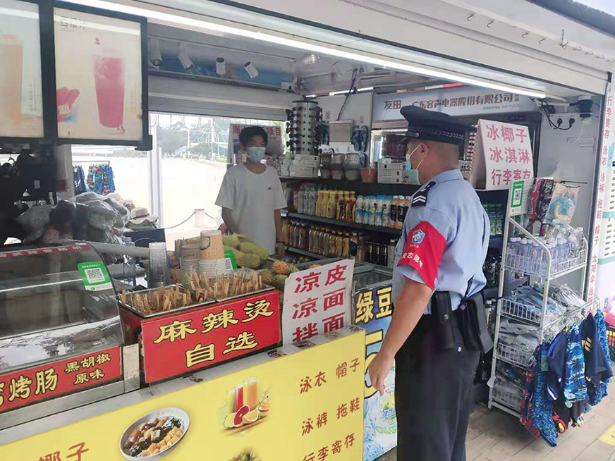 與此同時,觀音山旅游公司第一時間落實疫情防控相關要求,緊急部署加強企業(yè)防疫防控生產工作:迅速、有序組織員工核酸檢測,三天內全體員工已全部完成第一輪、第二輪檢測;第一時間向商戶宣傳了防疫知識,引導商戶自覺做好防控疫情的措施;組織環(huán)島路綜合巡查隊立即對轄區(qū)內各商鋪、攤規(guī)點全面開展疫情防控安全巡查工作,檢查經營人員是否按要求佩戴口罩、環(huán)境消殺情況等,并再次強調避免人員聚集,相互間務必保持一定的安全距離,如發(fā)現(xiàn)異常立即上報,有效提高了商戶的防范意識,加大對疫情防控的重視度,真正做到“防患于未然”。