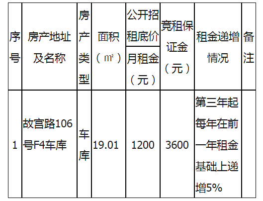 故宮路106號(hào)F4車庫房產(chǎn)招租情況