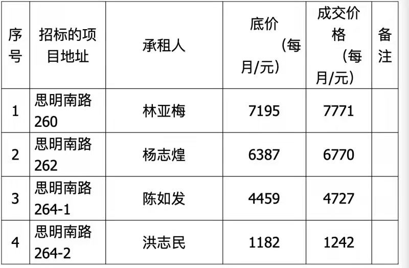 思明南路260-264等房屋公開招租成交公告