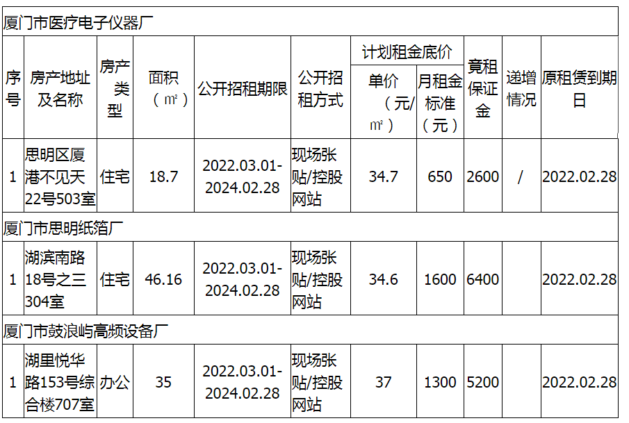 思明區(qū)屬托管企業(yè)出租房產(chǎn)招租公告(2022年1-3月)