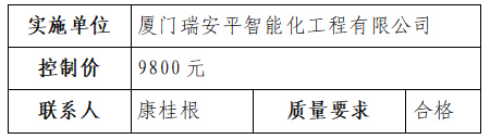 根據(jù)相關(guān)規(guī)定,我司負(fù)責(zé)采購的園區(qū)服務(wù)中心觸控一體機(jī)直接發(fā)包廈門瑞安平智能化工程有限公司實(shí)施,現(xiàn)于2022年1月14日至2022年1月18日對外發(fā)布結(jié)果公告,內(nèi)容如下: