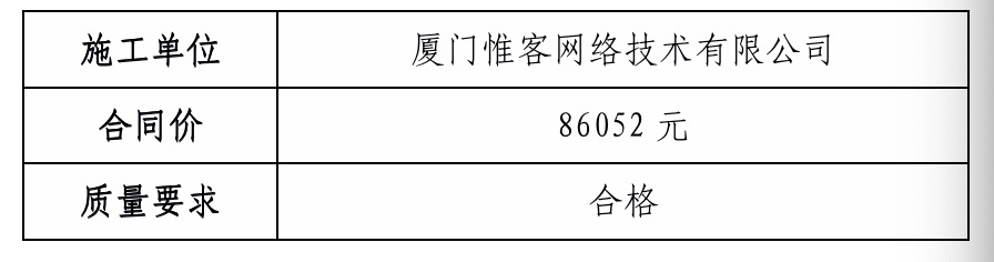 根據(jù)招投標(biāo)管理辦法、思明控股辦[2021]14號文《采購招標(biāo)管理辦法》的相關(guān)規(guī)定,我司負責(zé)思明影視微信小程序系統(tǒng)開發(fā)服務(wù)項目直接發(fā)包廈門惟客網(wǎng)絡(luò)技術(shù)有限公司實施,現(xiàn)通過思明控股網(wǎng)站于2022年1月30日至2022年2月08日進行成交結(jié)果公告,內(nèi)容如下: