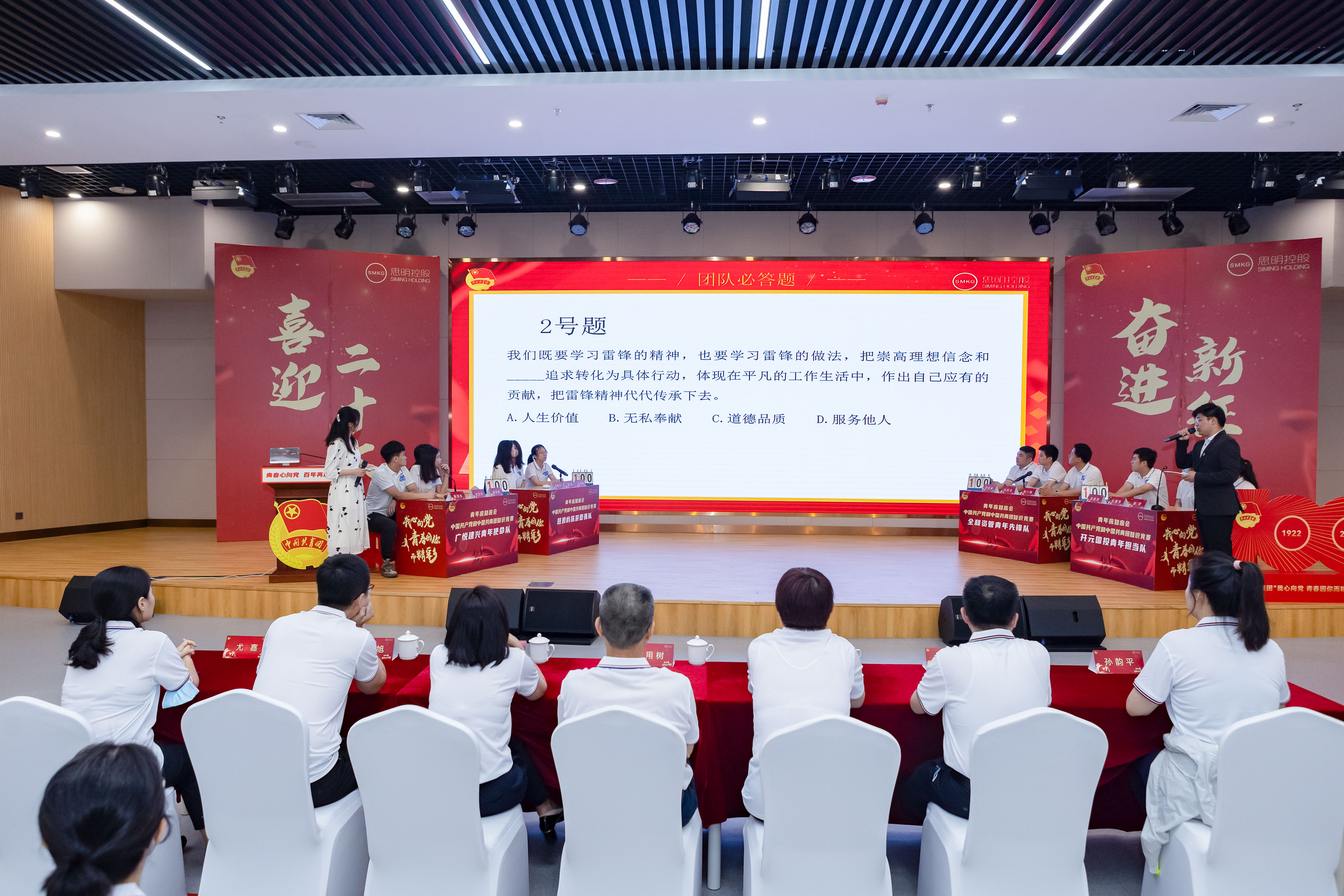 思想政治教育是新時代團員青年的一堂必修課。 “青年應知應會”——中國共產黨和中國共青團知識競賽精彩紛呈,緊張激烈。通過團隊必答題、個人必答題和搶答題三個環(huán)節(jié)角逐,廣悅建興青年使命隊榮獲一等獎,全和資管青年先鋒隊、鼓浪嶼旅游青年圖強隊和開元國投青年擔當隊分別獲得二等獎、三等獎和優(yōu)勝獎。
