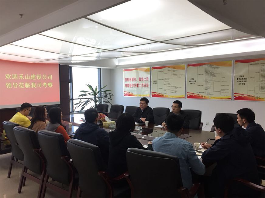 2017年12月11日上午,建發(fā)集團下屬廈門禾山建設(shè)發(fā)展有限公司王琳琦副總經(jīng)理帶隊蒞臨我司交流考察,我司林為民董事長就企業(yè)經(jīng)營管理、人才培養(yǎng)及創(chuàng)新征收模式等方面與其進行了深入交流。現(xiàn)場氣氛熱烈,話題新穎務(wù)實,雙方暢所欲言,各有所獲,取得了較好的經(jīng)驗成果。