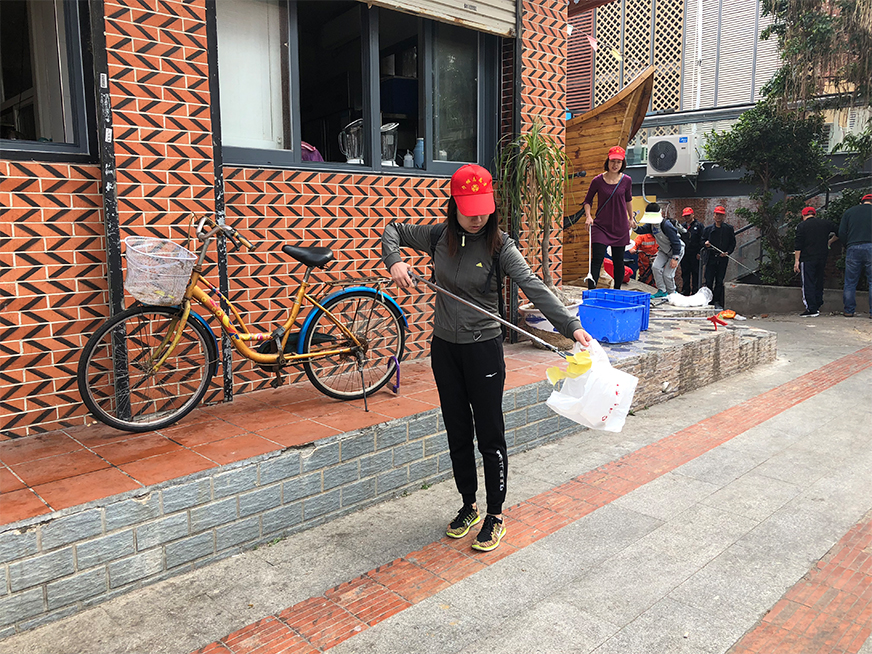 當(dāng)天上午9點,支部全體黨員到達(dá)曾厝垵文創(chuàng)村開始開展環(huán)境衛(wèi)生清理活動。大家先是齊心協(xié)力清理了一處無人保潔的“衛(wèi)生死角”,而后分組行動,沿著景區(qū)撿拾垃圾。小到煙頭、紙屑、果皮,大到餐盒、食品袋,只要一發(fā)現(xiàn)“目標(biāo)”就立即清理。春意盎然的文創(chuàng)村里閃動著志愿者們的身影,活動不時贏得店家過往游客和的贊賞。