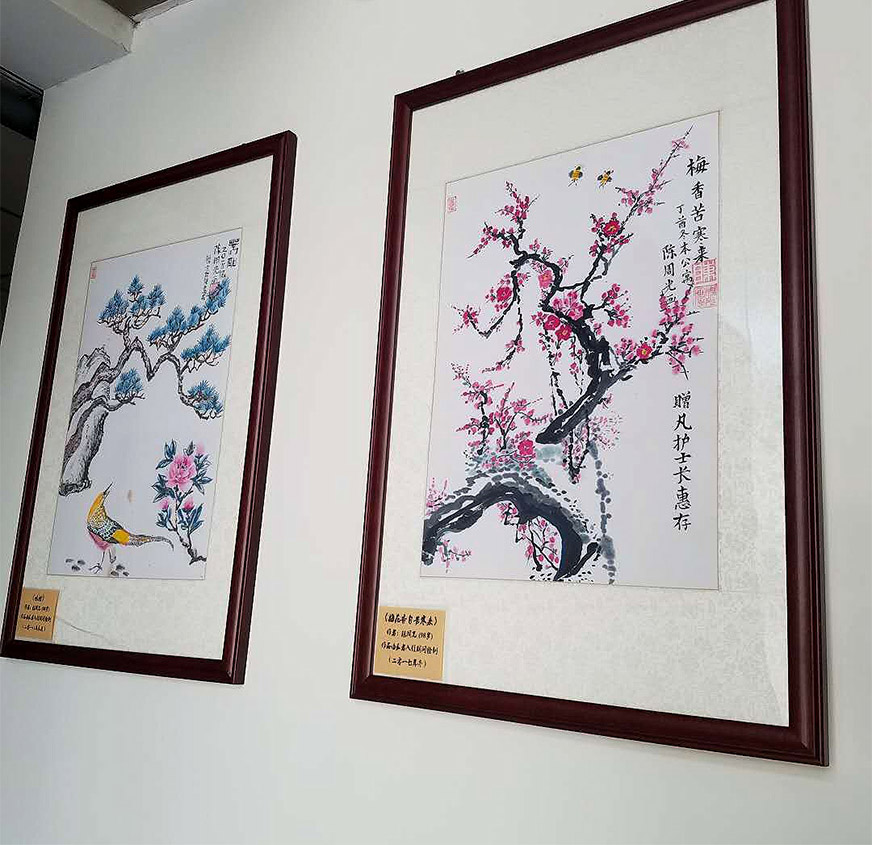 每個人都有希望擁有展示自己能力的舞臺,不論是小孩、成年人還是老人。源泉山莊老年公寓的書畫室,翰墨馨香,經(jīng)常有愛好書畫的老人到這里寫寫畫畫。平常有興趣的人會到書畫室欣賞老人的作品,這里也成了前來公寓參觀的人必到之處,他們看了老人書畫作品后不禁豎起大拇指稱贊。書畫文化是我司打造養(yǎng)老文化的重要舉措之一。公司羅錦龍董事長曾多次指出,要將老人的書畫作品上裱掛出,體現(xiàn)我司養(yǎng)老文化氣息。為此,公司多次組織運(yùn)營部、資產(chǎn)與后勤保障部等相關(guān)人員,挑選一些優(yōu)秀的書畫作品,用精美畫框裱起來,在1樓大廳和7樓、9樓開辟了3個展示欄,讓所有到我們公寓的人,能夠一目了然看到這些美麗書畫。