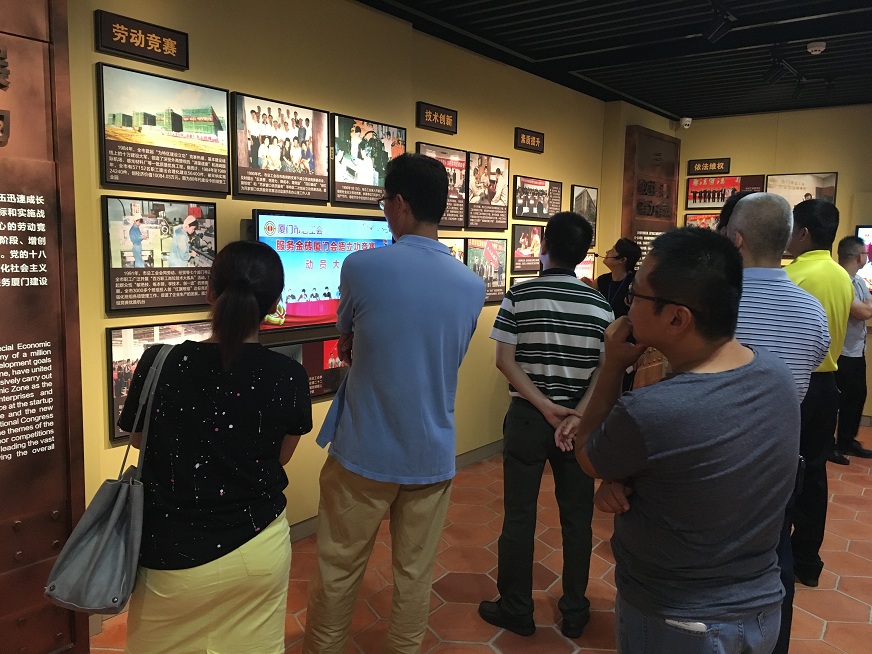 陳列館分為三部分,一樓是廈門(mén)工運(yùn)史展,二樓是改革開(kāi)放40年廈門(mén)工會(huì)工作成果展,三樓是羅揚(yáng)才、楊世寧烈士工作場(chǎng)景復(fù)原。全體黨員干部認(rèn)真傾聽(tīng)現(xiàn)場(chǎng)工作人員的講解,了解廈門(mén)早期產(chǎn)業(yè)工人的誕生、發(fā)展史以及改革開(kāi)放40年廈門(mén)總工會(huì)工作成果。