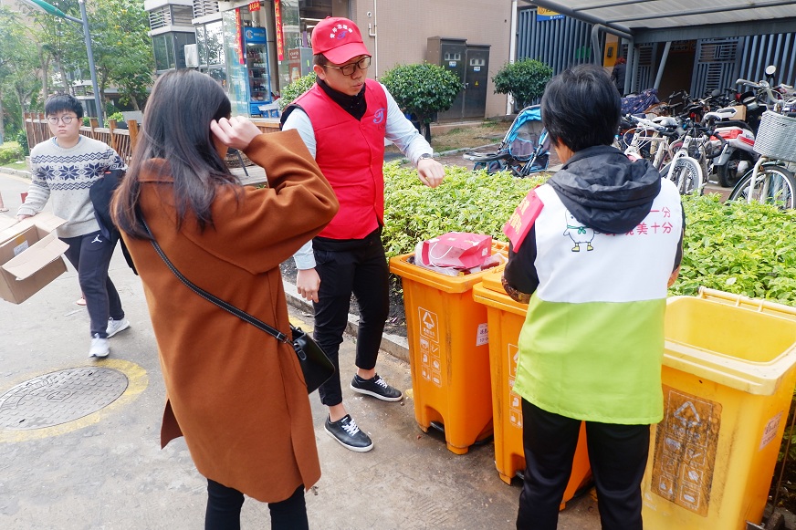 在現(xiàn)場(chǎng)活動(dòng)中,志愿者們身穿紅馬甲,頭戴小紅帽,分散在源泉山莊、“泊寓”思明?青年人才公寓的各個(gè)樓宇樓道、垃圾投放點(diǎn)等處,分發(fā)粘貼垃圾分類(lèi)宣傳單,向路過(guò)的居民宣傳正確的垃圾分類(lèi)方式、干濕分類(lèi)的做法以及垃圾分類(lèi)對(duì)環(huán)境衛(wèi)生的重要性并深入衛(wèi)生死角清理路邊的垃圾。倡導(dǎo)周邊居民從身邊的小事做起,從我做起,以良好的生活習(xí)慣,愛(ài)我家園,愛(ài)我廈門(mén),保護(hù)我們美好的生活環(huán)境。