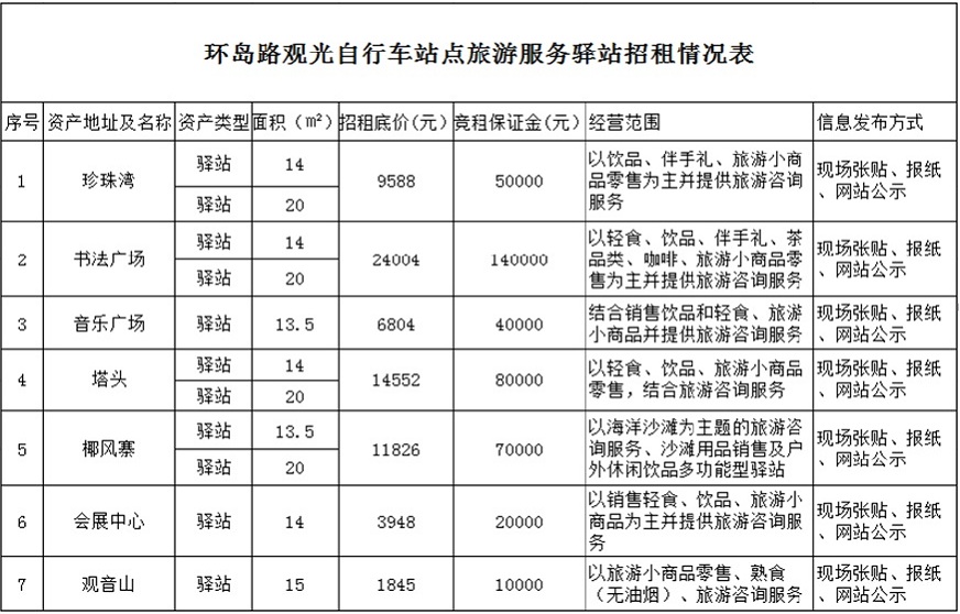 環(huán)島路觀光自行車站點旅游服務(wù)驛站公開招租