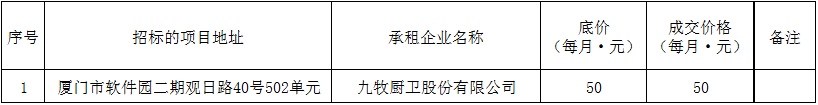 根據(jù)思明區(qū)國有企業(yè)資產(chǎn)出租管理的相關(guān)制度,我司2019年4月11日上午9:00于觀音山營運中心2號樓2層2號會議室進(jìn)行公開招租現(xiàn)場開標(biāo),現(xiàn)通過思明控股網(wǎng)站對外發(fā)布成交公告。內(nèi)容如下: